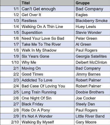 Unsere Setlist für den Tag:
